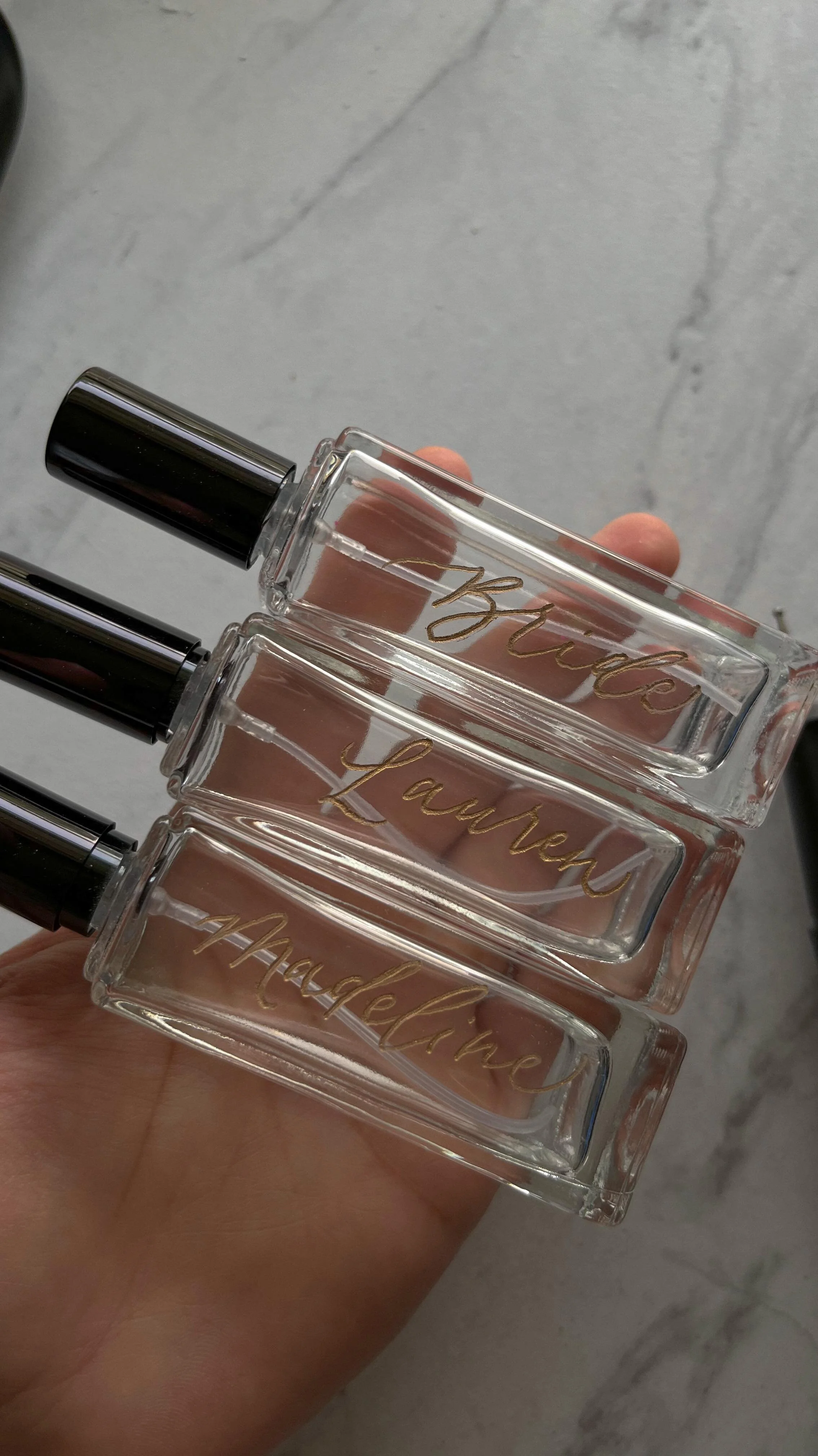 In-studio custom engraving + calligraphy for perfume bottles, wine bottles & other special gifts